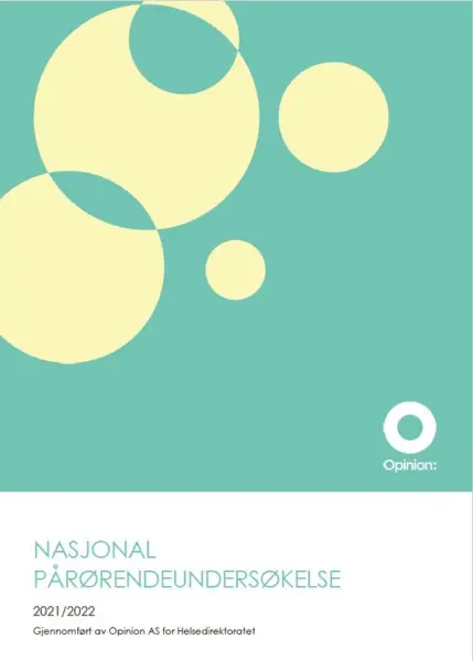 Opinion har på oppdrag fra Helsedirektoratet gjennomført en nasjonal pårørendeundersøkelse. Formålet med undersøkelsen har vært å kartlegge pårørendes rolle, erfaringer og situasjon. Pårørendeundersøkelsen er gjennomført med en landsrepresentativ spørreundersøkelse med 3000 telefonintervju samt 25 kvalitative dybdeintervju. Pårørendeundersøkelsen er gjennomført i perioden september 2020 til januar 2021. I kartleggingen er det lagt til grunn et vidt pårørendebegrep, og det er ikke stilt krav om regelmessighet eller et visst omfang av pårørendeinnsats. I spørreundersøkelsen defineres pårørende som «en som støtter, hjelper eller pleier en nærstående som følge av fysisk eller psykisk sykdom, alderssvekkelse, funksjonsnedsettelse eller rusavhengighet». Dermed kan pårørende være både foreldre, søsken, annen familie, venner, naboer eller arbeidskolleger. Målgruppen inkluderer de som er pårørende i dag, de som nylig har vært pårørende (inkludert etterlatte), og de som står nær noen som de ikke er i posisjon til å hjelpe fordi vedkommende ikke vil eller kan motta hjelp. Informantene i dybdeintervjuene er nærmeste pårørende med store omsorgsoppgaver.