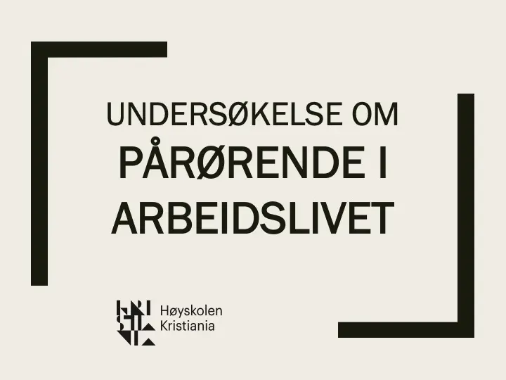 Undersøkelsen består av 30 spørsmål og vil ta ca. 10 minutter. Undersøkelsen er anonym, og alle svar blir behandlet konfidensielt. Kartleggingen gjennomføres av førsteamanuensis Laura Mercer Traavik og høyskolelektor Kristin Molvik Botnmark. Hvis du ønsker mer informasjon om prosjektet ta kontakt med Laura.Traavik@kristiania.no eller Kristinmolvik.Botnmark@kristiania.no Ved å delta i kartleggingen bidrar du til mer kunnskap om pårørendes situasjon i arbeidslivet i dag. Undersøkelsen er åpen til 27 mai -21. Stor takk for din deltakelse!